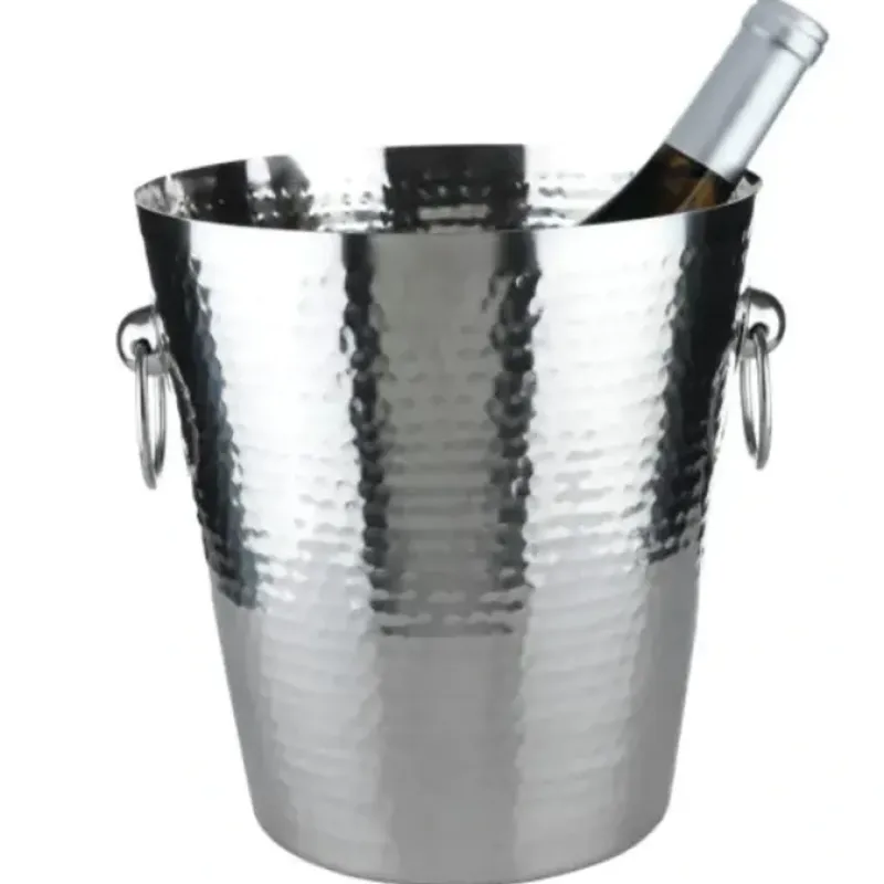 n the Forge Hammered Metal Ice Bucket. classically sculpted stainless steel is broken up by powerful blows for a hammered finish. resulting in sleek lines rent just enough to capture the light necessary for showcasing your wine.