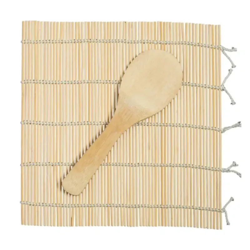 - Durable and eco-friendly bamboo material used for sushi mat and rice paddle