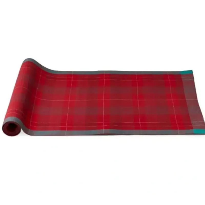 This red and green joyous plaid cotton table runner is the perfect way to add a touch of holiday cheer to your table setting. the table runner is made from high-quality cotton. which is soft and durable. it features a festive plaid design in red and green colors.