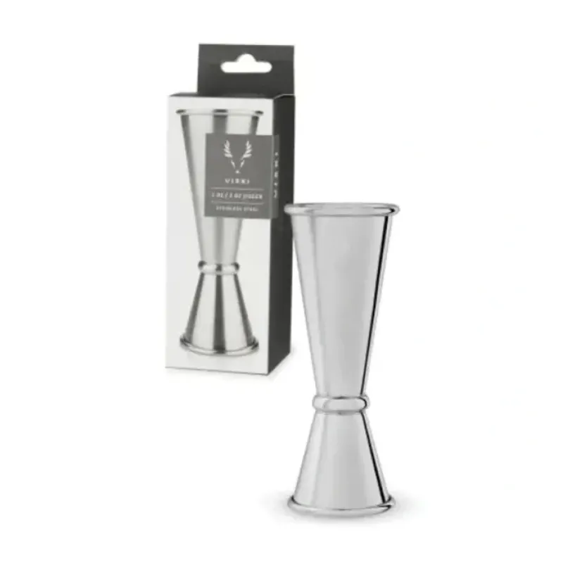 Cast in lustrous stainless steel with a band to separate its one- and two-ounce sections. the interior of each side of our professional Japanese-style double jigger is scored with pinpoint mixology measurements (1.5. 0.75 and 0.5 ounces).