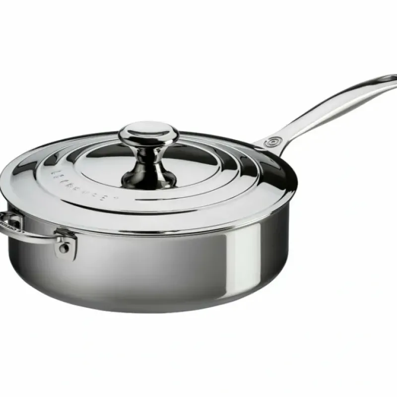 - Premium commercial grade tri-ply stainless steel saute pan from Le Creuset Cookware