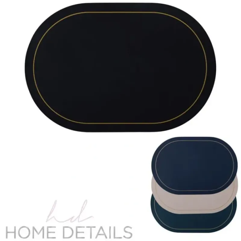 Leather-Look Oval Placemat With Gold Outline – cozylivehome.com | we sell a wide range of comfortable household items^ Shop All