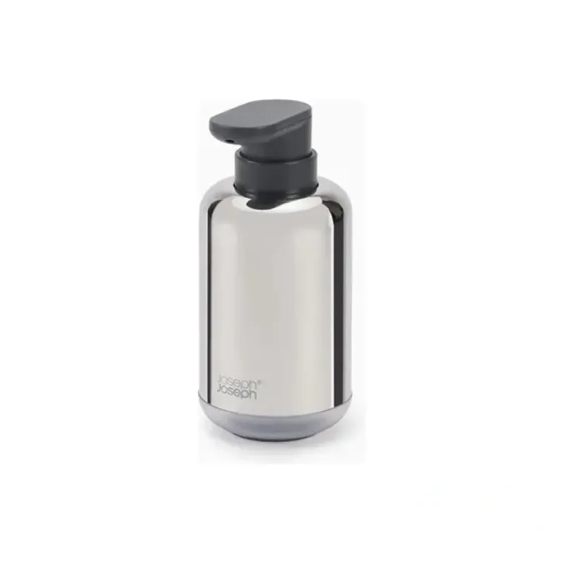 This sleek soap dispenser features an easy-push pump head. non-slip base and holds up to 300ml of liquid soap. Its polished stainless-steel finish makes a real statement in the bathroom.