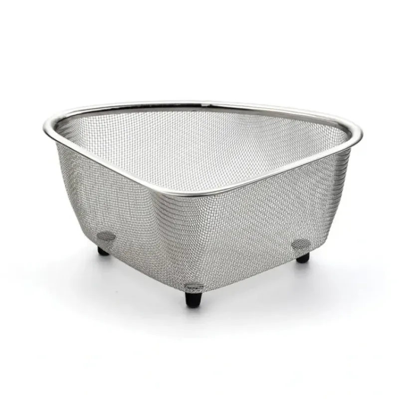 - This compact mesh basket fits perfectly in a sink corner and is ideal for collecting food and vegetable scraps for the compost pail or organizing your sponges. scrubbies and dish brushes.