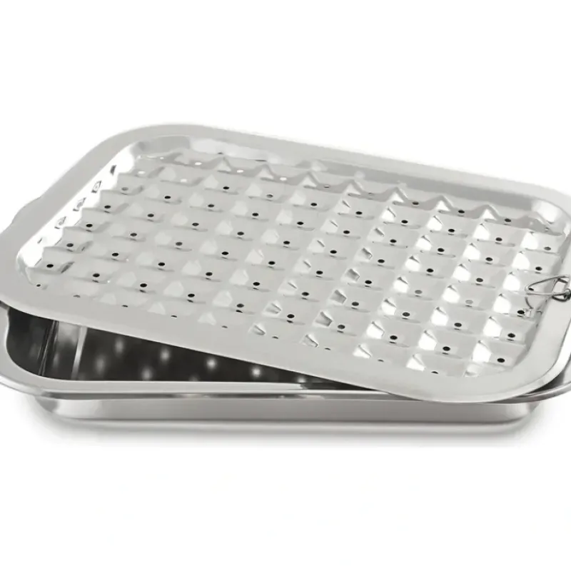 - This two-piece stainless steel broiler pan with perforated top allows for grease to drain off. while you cook. for healthier results.