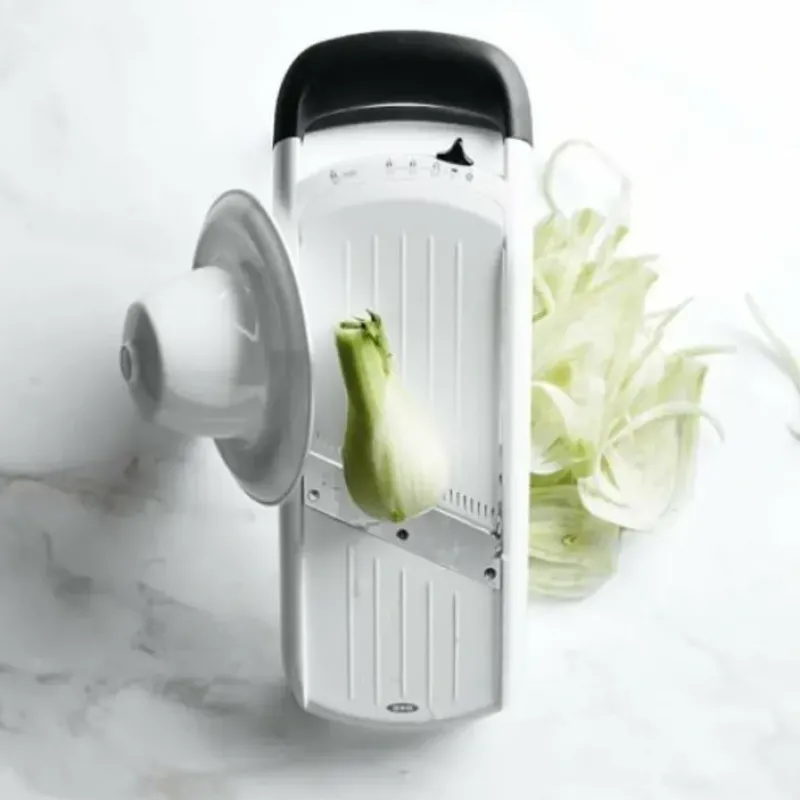 This streamlined kitchen slicer is exactly what busy cooks need: a simple. sturdy tool that’s super-fast and easy to use. Allowing you to prep foods with professional finesse. it’s great for transforming your favorite fruits and vegetables into attractive. uniform slices or julienne strips—no blade changes required.