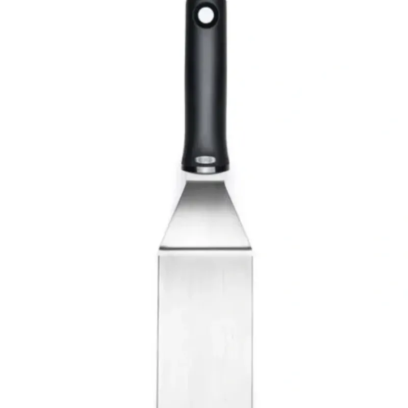 The Good Grips Restaurant Turner is perfect for flipping burgers. making pancakes. sautéing vegetables. scraping griddles and more. All three edges are beveled for chopping food while cooking. just like a professional chef or line cook! The large head easily lifts large food while keeping it intact. and flexes to make transferring and turning easy. The flared non-slip handle provides a comfortable grip and helps keep your hand away from hot food while in use.