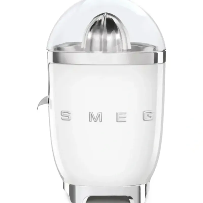 Beautiful retro aesthetics meet high-powered contemporary performance in a die-cast. powder-coated steel juicer. It’s a breeze to squeeze fresh orange. grapefruit or lemon juice—simply hold a halved piece of citrus fruit against the reamer and let the automatic motor kick in. delivering juice through a pulp strainer and down a dripless spout. straight into your glass. A Tritan dome lid doubles as a bowl for citrus rinds when the unit is in use and protects your juicer for storage after you’re through.