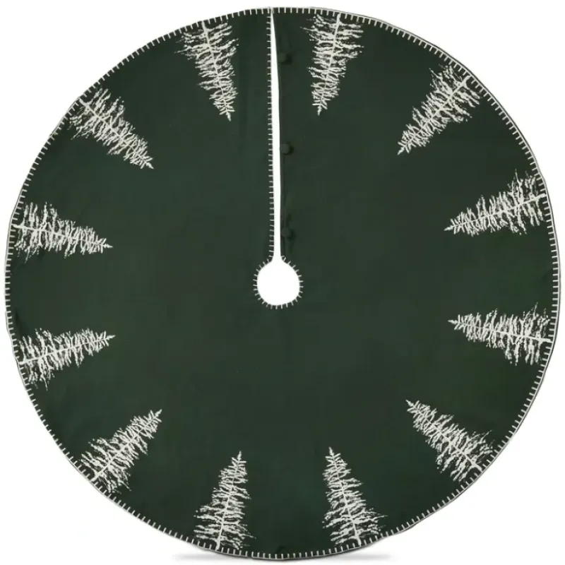 this wilde pine tree skirt is the perfect way to add a touch of nature to your home during the holiday season. the green cotton tree skirt features a beautiful wilde pine tree design that is sure to complement any decor. the tree skirt is easy to put on and take off with its convenient metal snap closure.
