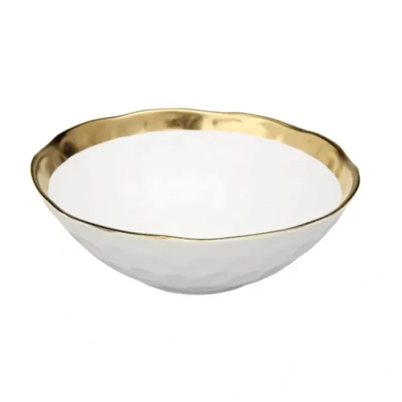 DescriptionE8068495WPB539 White Porcelain Bowl with Gold Rim – 8.75″D x 3″H