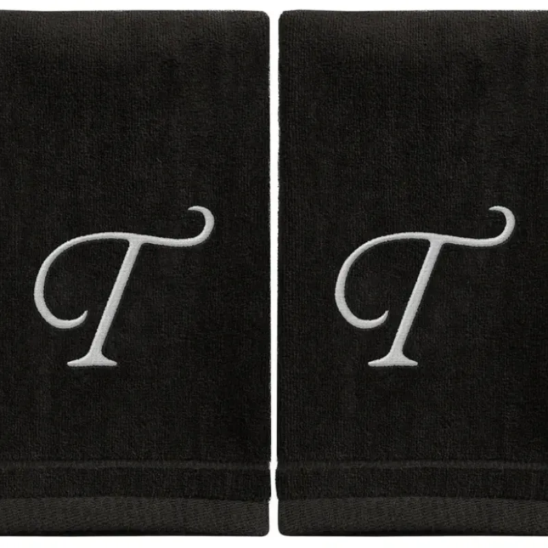 DescriptionU0163698Black Monogrammed Towel – White Embroidered – Initial T