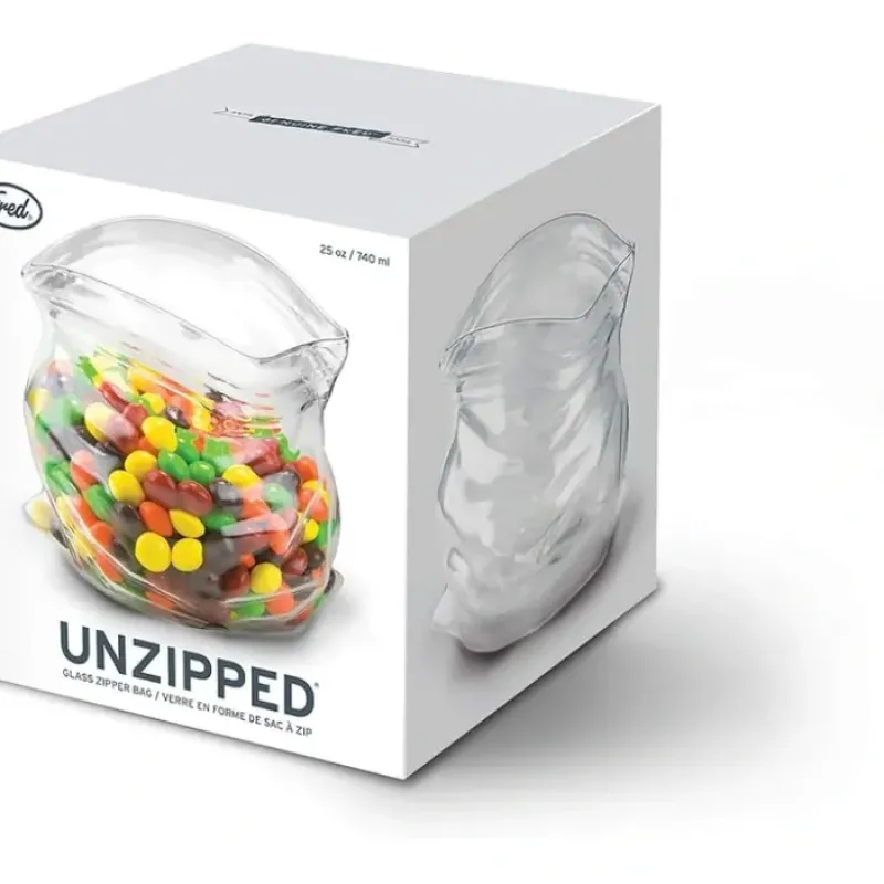 DescriptionAB380088Fred and Friends Unzipped-Bag-Shaped Hand-Blown Glass Bowl