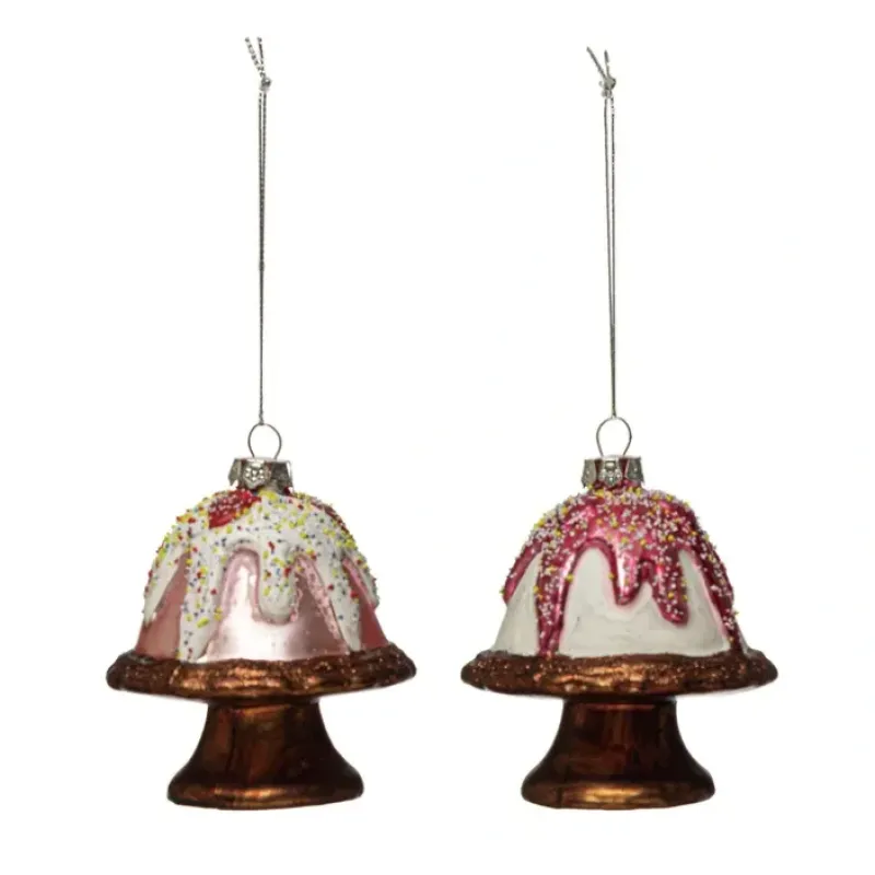 3-1/2″H Glass Cake on Pedestal Ornament. 2 assorted Styles. Price is for one ornament