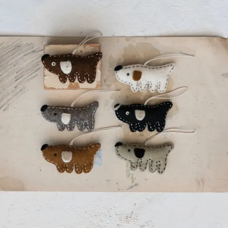 4-1/4″L x 2-1/4″H Handmade Wool Felt Dog Ornament w/ Stitching