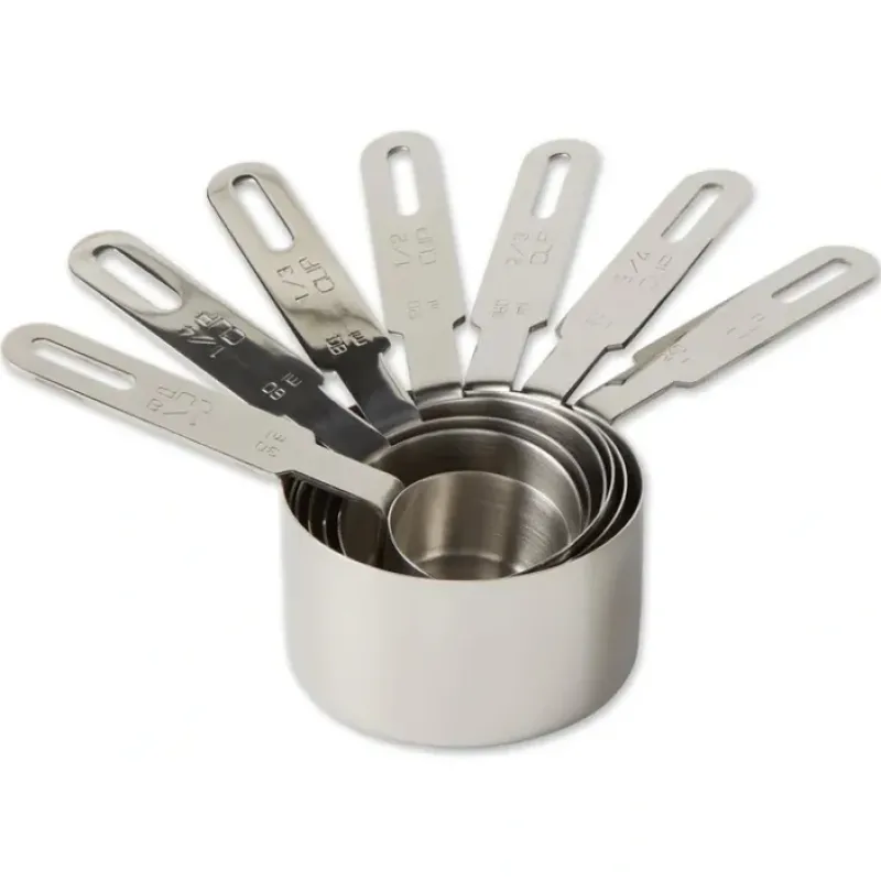 - Our set of seven measuring cups goes above and beyond by offering the most popular measures for cooking and baking. Dividing and multiplying recipes is a breeze with this deluxe set.