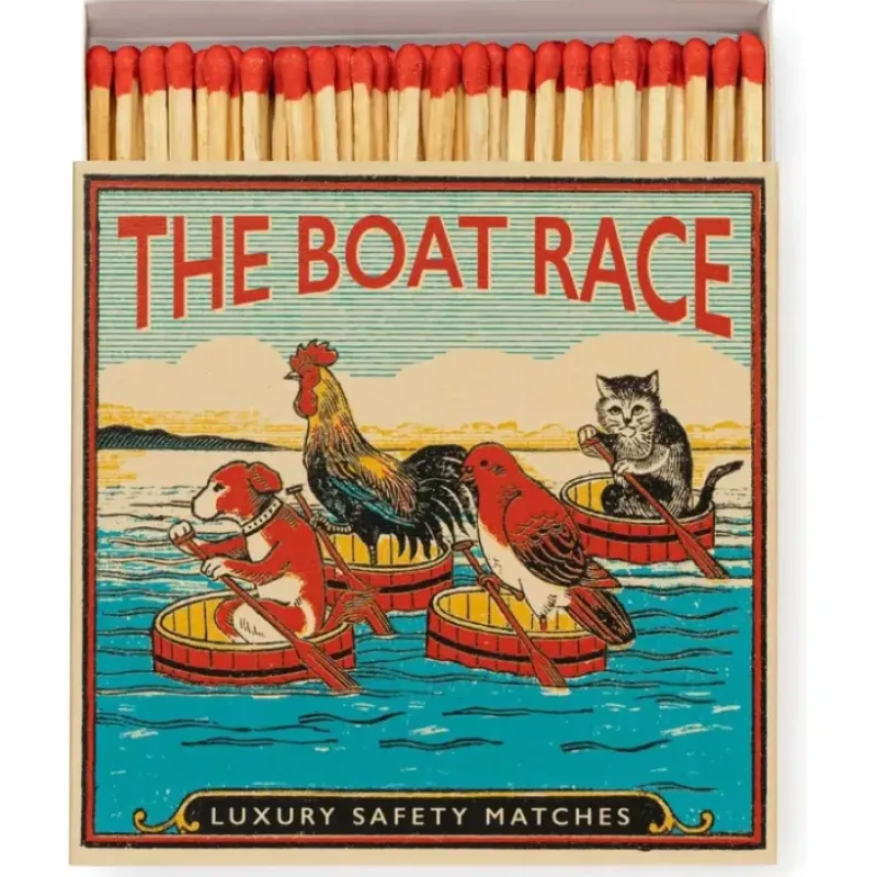 The Boat Race luxury matches depicts a rather peculiar scene. and we can’t help wondering what they’re racing for… Perhaps a human dropped their lunch somewhere on the other side of the river.