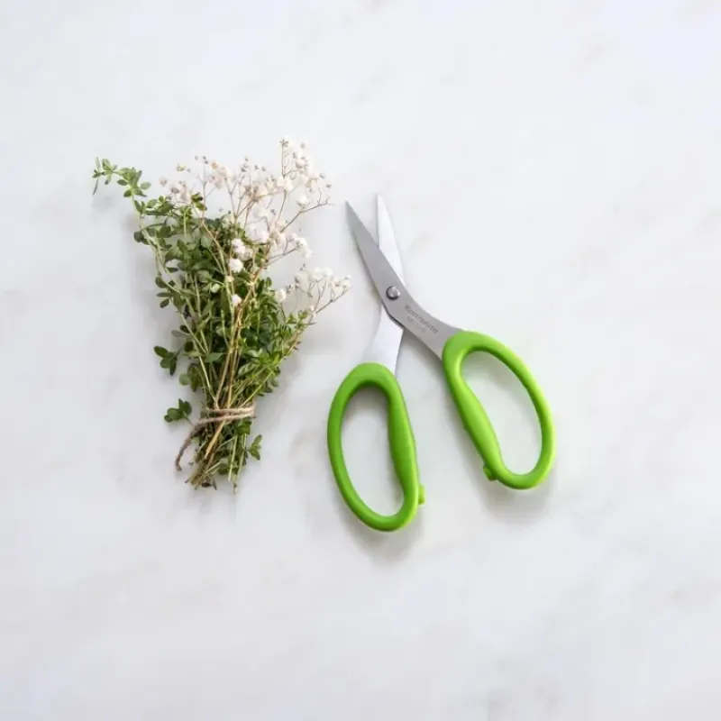 The Messermeister 6″ Culinary Scissors are perfect for snipping herbs and flowers. opening food packages and cutting through small chicken bones and lobster shells. They are great for using around the kitchen. in the garden and for arts and crafts. The blades are made from a durable stainless steel. and the handles have a soft and flexible. slip-resistant grip.