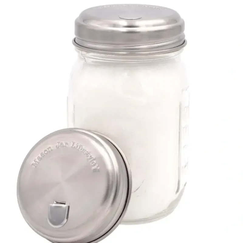 This fun lid will make a great addition to your Mason jar accessory collection!This stainless steel version will replace our old aluminum sugar lid.Stainless steel is food safe. dishwasher safe. and will not rust or tarnish.Jar is not included.