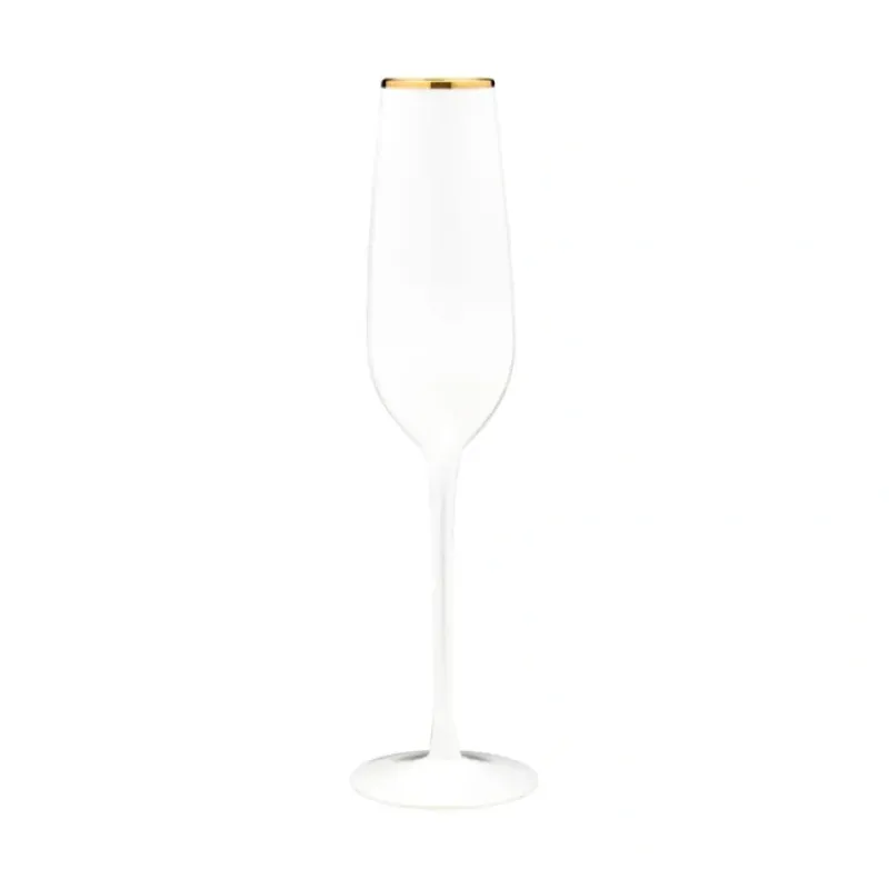 Z2904929VD-P8-WH Vikko Decor – Platinum, White with Gold Rim, Champagne Flute Glass, 8.5 oz