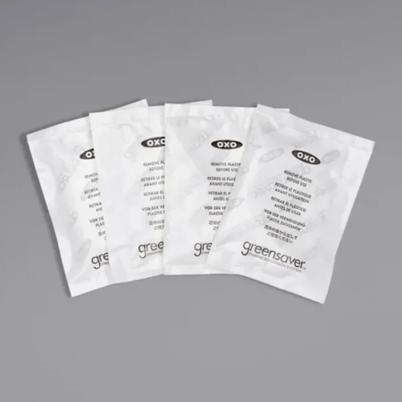 Ensure that your OXO 11145300 GreenSaver Produce Keeper (sold separately) is operating at peak performance with this 4-pack of OXO GreenSaver carbon filter refills for Produce Keeper. Used to trap and absorb excess ethylene gas emitted by fresh fruits and vegetables. these filters delay spoilage within your produce keeper to minimize rapid decay. Each carbon filter works for 90 days. guaranteeing a year of freshness from a single pack when paired with OXO produce savers.