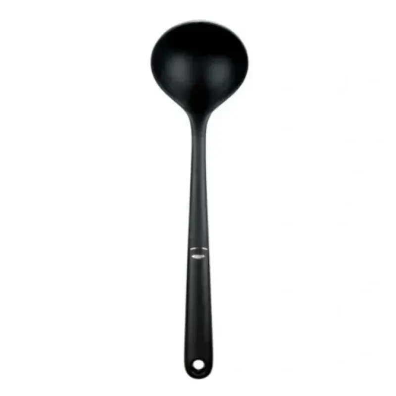The Nylon Ladle is perfect for portioning and serving soups. stews and chili. Our nylon tools are a cut above. featuring oversized heads. extra-long. sturdy necks and comfortable grips. Heads are heat-resistant up to 450°F and won’t scratch non-stick cookware.