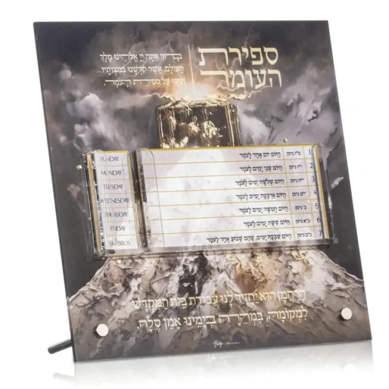 This stunning Lucite Sefiras Haomer Chart features a gorgeous Matan Torah painting by Batya. Includes removable cards to keep your counting easy. This innovative. exclusive chart has all the hebrew words you will need to count correctly. Easily find the correct day of the week Sefira starts on tht year. and then begin the count. Match the day + the day of the week easily. Can be used on Shabbos and Yom Tov so you never miss a day! Perfect for display in any room.Dimensions: 8″x8″Includes two magnets
