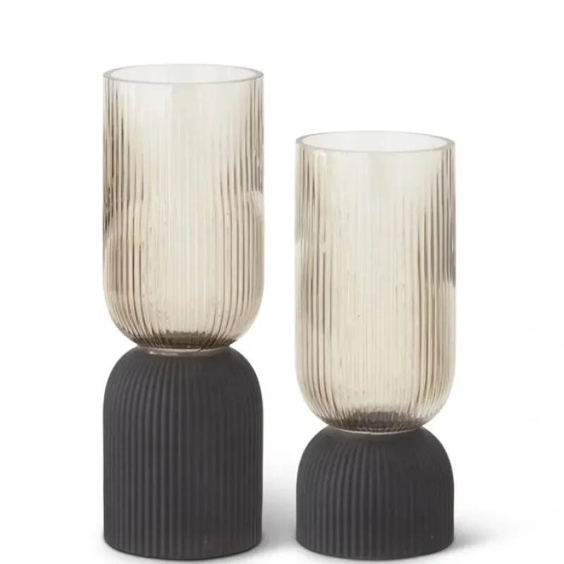 Sale 18616A-2 12 Inch Ribbed Brown Transparent & Matte Black Vase – cozylivehome.com | we sell a wide range of comfortable household items Giftware