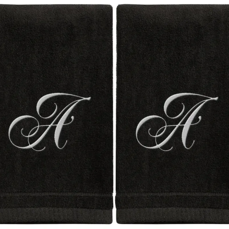 DescriptionWX593187Black Monogrammed Towel – White Embroidered – Initial A (