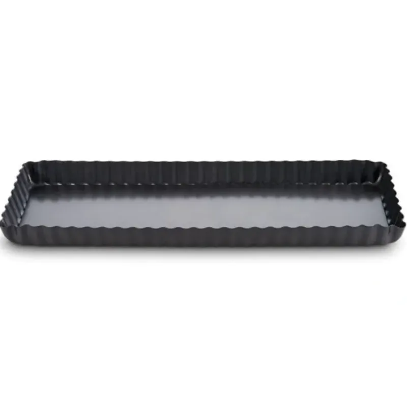 - Mrs. Anderson’s Non-Stick Rectangular Quiche Pan with removable base bakes evenly and releases food without any stuck-on mess