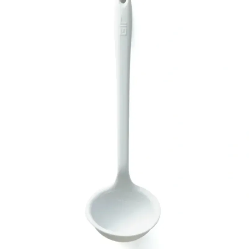 The ladle. perfected. A precision pouring edge that won’t spill a drop. A deep scoop with imperial and metric measurements embossed in easy-to-read text. A handle set at the ideal angle for ergonomic use. A flexible bowl that gets into the hard-to-reach corners of any pot. This ladle might just change your life.