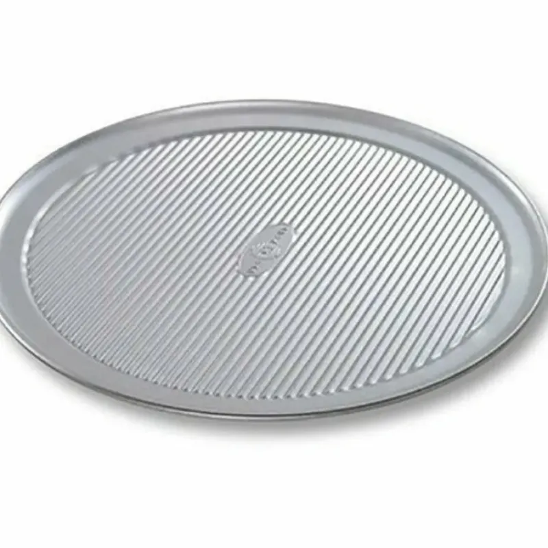 The USA PAN 12 Inch Pizza Pan is a sturdy. commercial grade pan designed to distribute heat evenly to make the perfect crispy pizza crust! Whether you are a fan of pepperoni. mushroom. onion. sausage. or bacon pizzas. the USA PAN 12 Inch Pizza Pan will help you bake restaurant-quality pizza in your very own oven. The 12 Inch Pizza Pan surface is coated with AMERICOAT. a proprietary non-stick silicone. allowing you to easily remove your favorite pizza from the pan with an easy clean-up experience. AMERICOAT is made without PTFE. PFOA and BPA. USA PAN’s professional grade bakeware helps everyday home bakers produce professional grade baked goods. USA PAN is a Bundy Family owned company. based in the Greater Pittsburgh. Pennsylvania area.