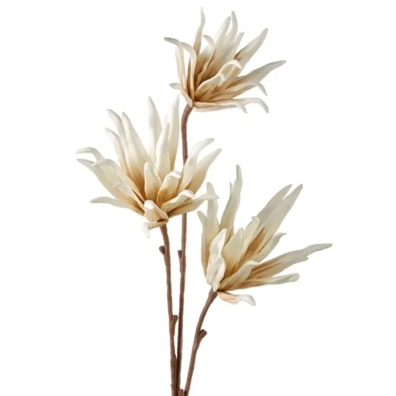 Enhance your space with stunning floral ambiance with this Cream Brown Delicate Beauty Artificial Flower Branch. This faux flower stem features three realistic white and cream flowers on a brown stem that can be styled alone in a vase or combined with other pieces to create an exquisite floral bouquet to bring a touch of nature to your home decor. EVA. Iron Wire. Plastic.