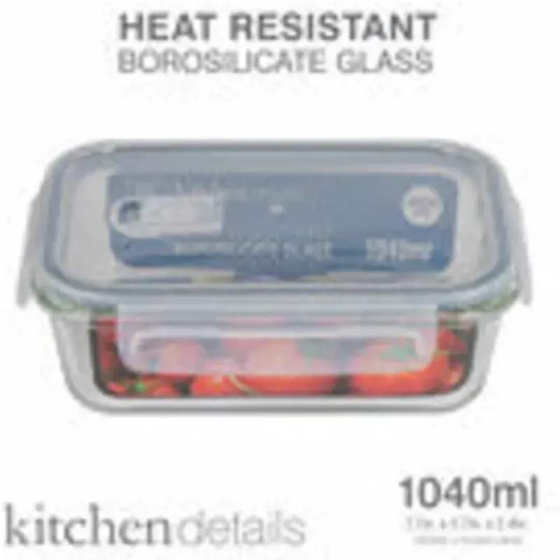 A87196691040ml Vented Rectangle pp lid High Borosilicate glass food container (FDA) – 1040 ML
