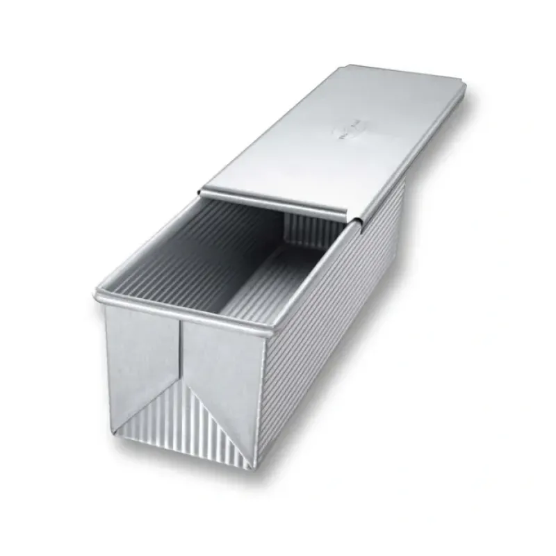 Make your own sandwich bread at home with our Non-Stick Large Pullman Pan with Cover – the same unique bakeware pan design used in professional bakeries.Our Nonstick Bakeware FeaturesOur clever pullman pan allows you to bake perfect sandwich bread like the professionalsUse with or without the lid for square or rounded topGet consistent results from our heavy duty aluminized steel bakeware that is used in professional and commercial kitchensFood releases easily from our nonstick. Americoat. coating that is FDA approved food-safeMade in the USA