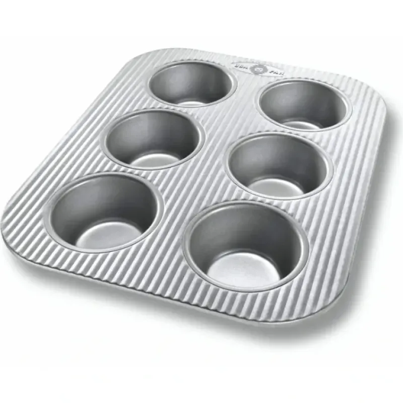The non-stick 6-cup Muffin Pan provides an effortless way to bake your favorite sweet or savory muffins. or cupcakes to perfection and release with ease. Our Nonstick Bakeware FeaturesOur muffin / cupcake pan bakes up perfectly delightful treats on par with the professionalsThis nonstick bakeware features 6 cups for muffins. cupcakes. a quick breakfast or intimate dessertWhatever you bake. it will release with ease from our Americoat. nonstick coatingConstructed of heavy gauge. aluminized steel. this muffin pan can be found in the commercial kitchens of professional bakersMade in the USA