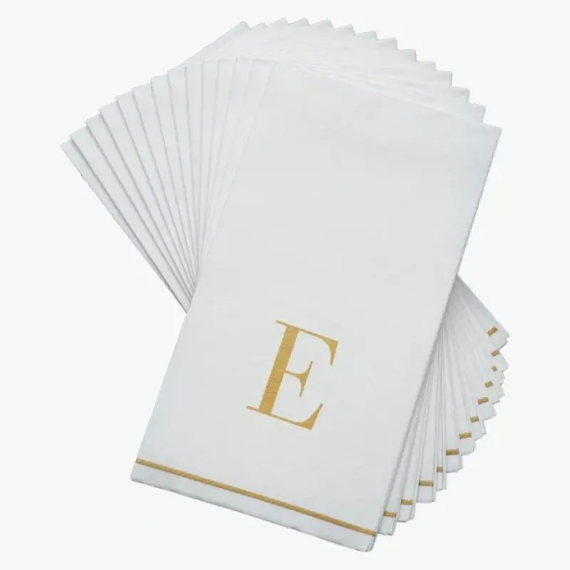 14 PK White and Gold Guest Paper Napkins – Letter E – cozylivehome.com | we sell a wide range of comfortable household items^ Shop All