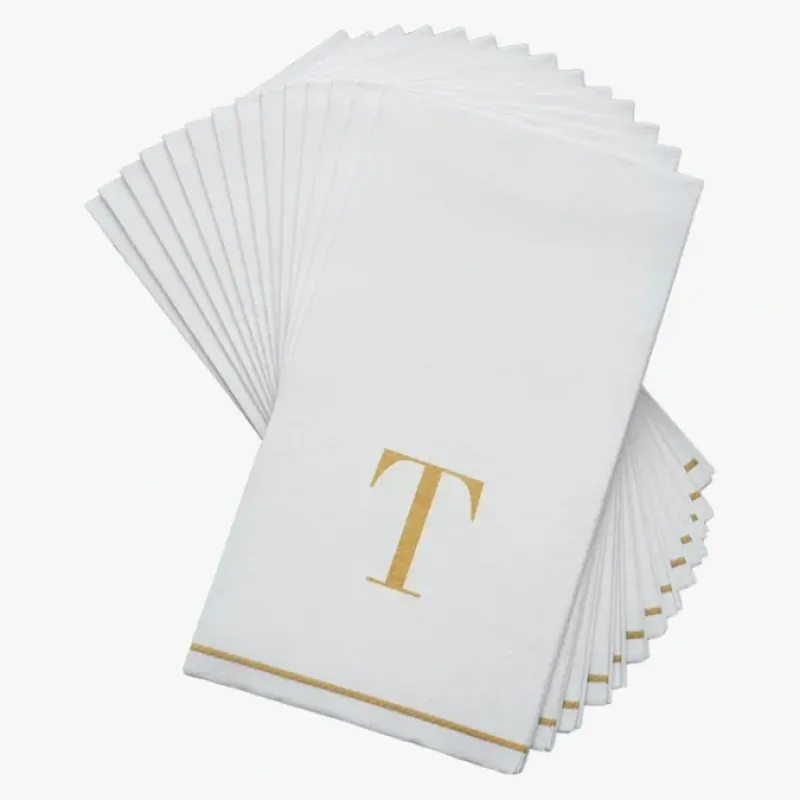 14 PK White and Gold Guest Paper Napkins - Letter T - cozylivehome.com | we sell a wide range of comfortable household items^ Shop All