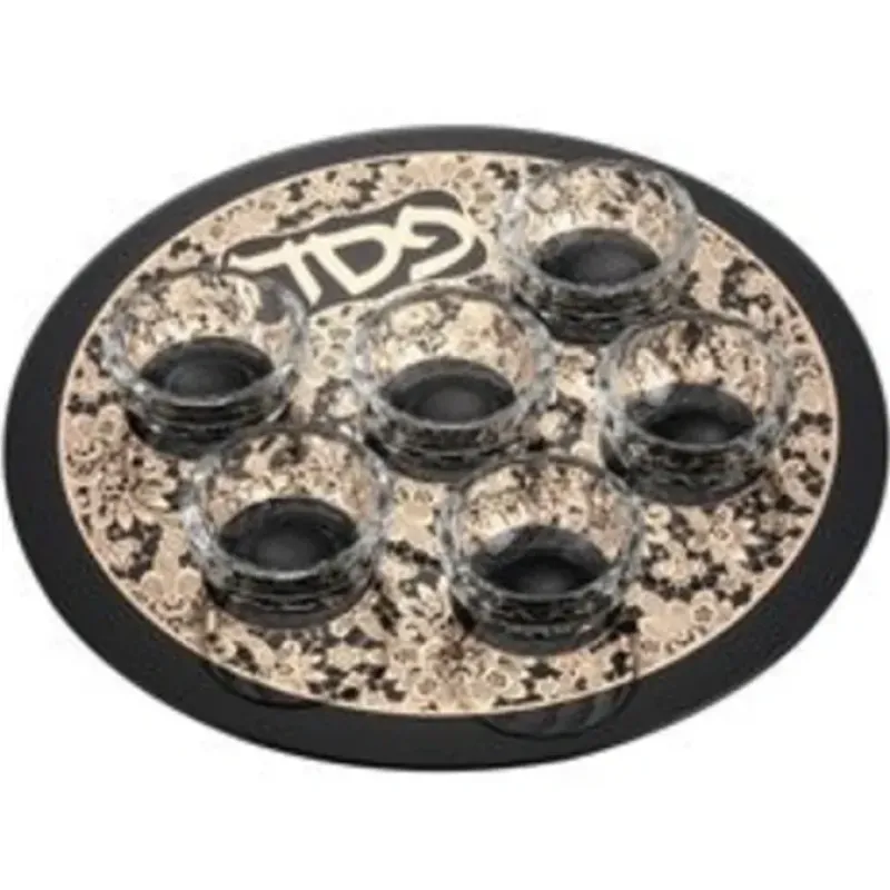 145808 Crystal Black Seder Plate With Gold Floral Design – 6 Bowls – 13″ – cozylivehome.com | we sell a wide range of comfortable household items^ Shop All