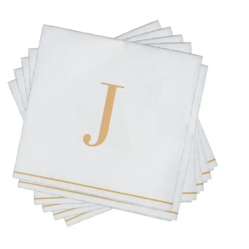 16 PK White and Gold Cocktail Paper Napkins - Letter J - cozylivehome.com | we sell a wide range of comfortable household items^ Shop All