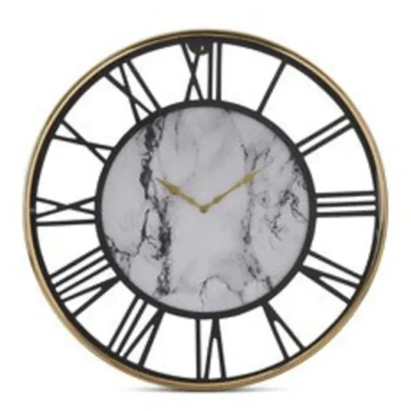 18320A 24 Inch Gold & Black Metal Framed Clock w/Marble Pattern Center – cozylivehome.com | we sell a wide range of comfortable household items^ Shop All