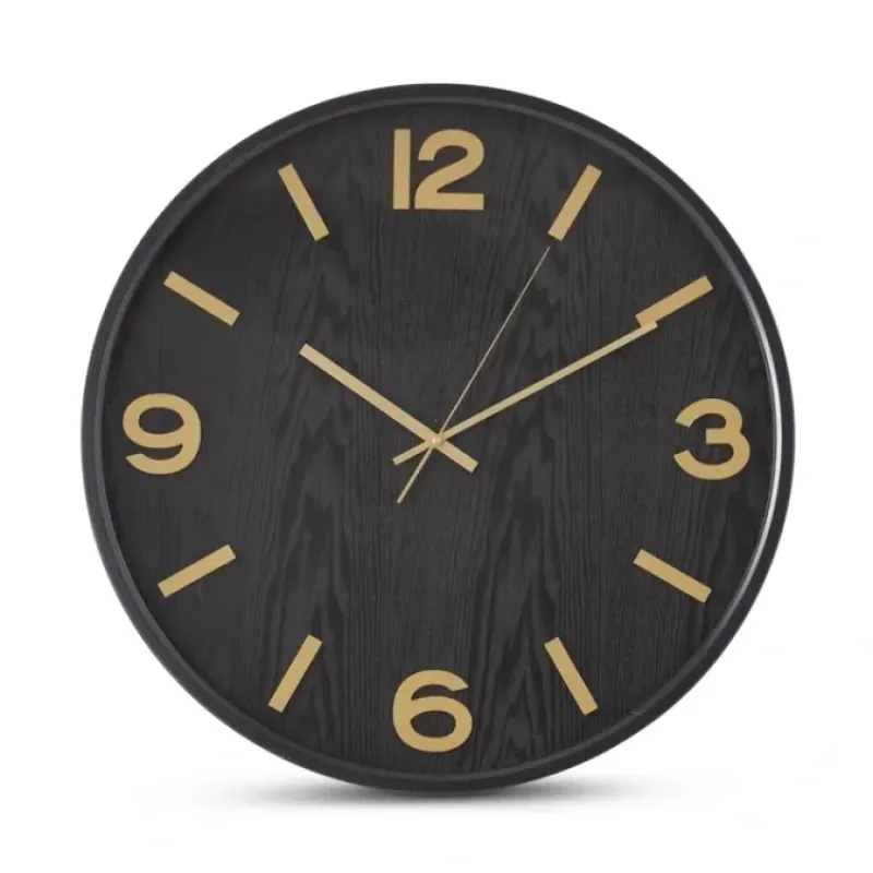 18666A 19.5 Inch Metal Framed Black Woodgrain Wall Clock w/Gold Numerals – cozylivehome.com | we sell a wide range of comfortable household items^ Shop All