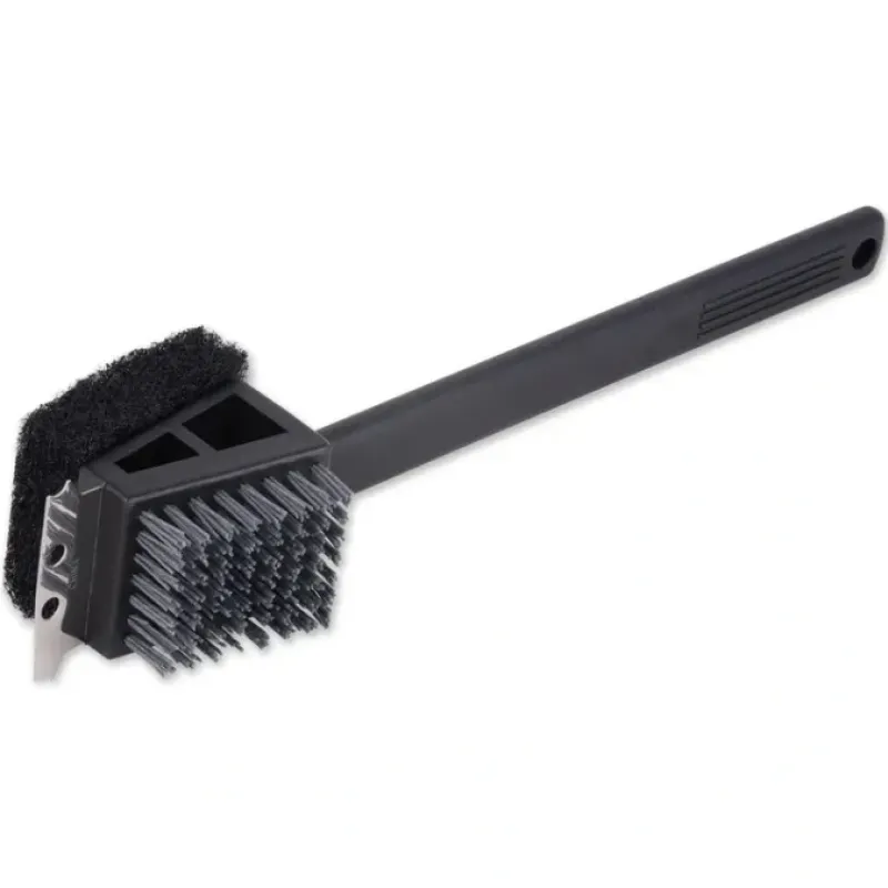- 3 in 1 action brush scours. scrapes. and cleans grill grates with a single tool.