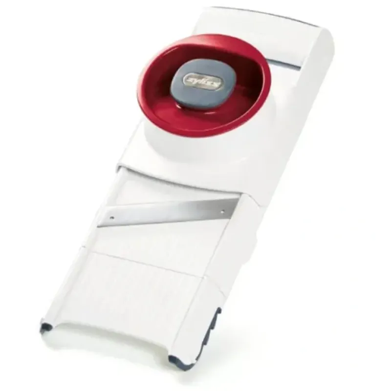 - Includes 1 mm. and 3 mm. micro-serrated slicing blades that slice through tough and soft foods with ease. angled for easy slicing