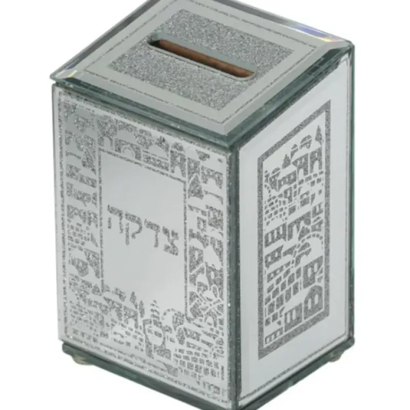 ZF51741843656 Glass Mirror Glitter Tzedakah Box With Silicon Legs – “Jerusalem” 4.7″