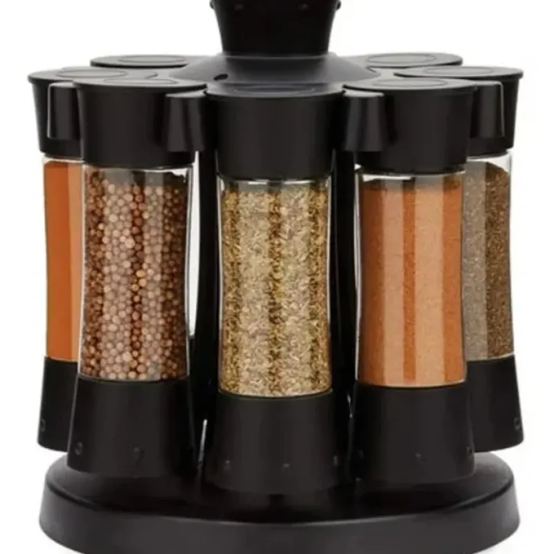 If you like spicing your dishes up with flavor. you’re in need of a convenient spice storage system. The Elite Auto-Measure Spice Professional features eight 3.5 oz. spice bottles on a rotating base. Choose to either shake or pour out your spices depending on your need. and automatically measure out 1/4 tsp. with each click for simple and precise measuring. This spice storage system double stacks or mounts under cabinets for premium storage and includes 16 spice labels for easy sorting and organization. Witness the space-saving functionality of this useful tool.