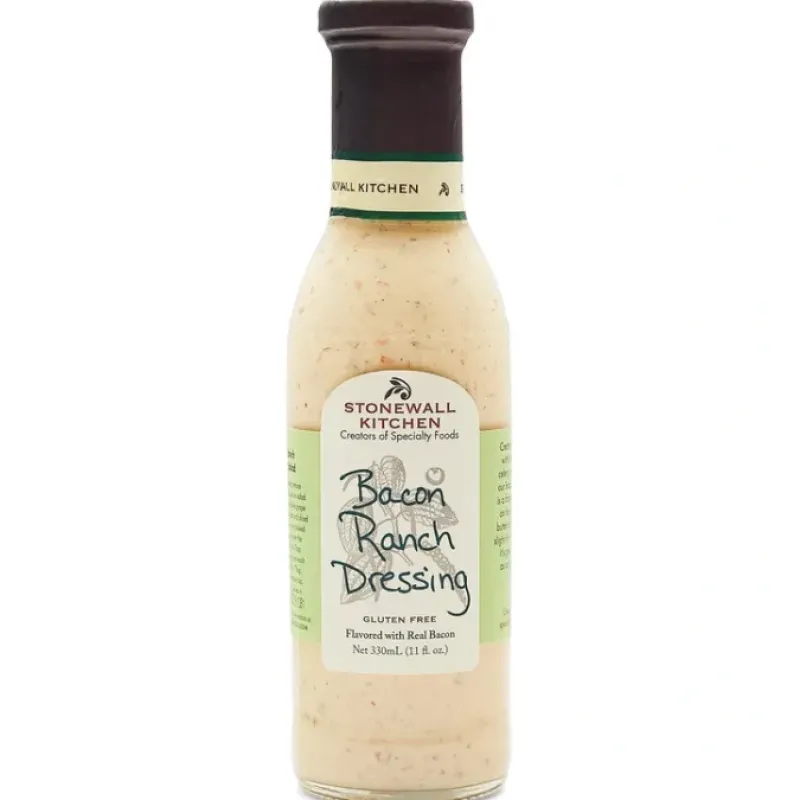Creamy and full flavored with bits of real bacon. celery. carrot and parsley. our Bacon Ranch Dressing is a fantastic staple to have on hand. With its classic buttermilk tang and ever so slight hint of cayenne pepper. it’s great on sandwiches. as a dip and of course. on salads.