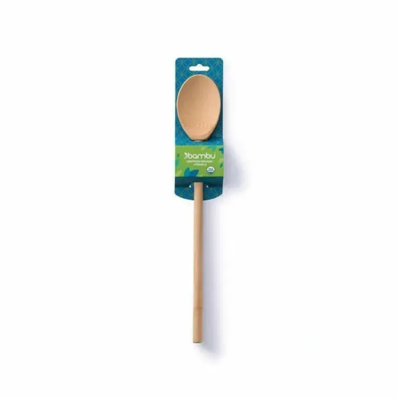 Lightweight and tougher than wood. the Bambu all-purpose bamboo mixing spoon is an essential tool in any kitchen. Made from a single piece of USDA certified organic bamboo. this spoon is perfect for working with everything from stews to cookie dough. Coated with a natural food-safe oil finish. its smooth surface won’t pick up or impart flavors to your food.