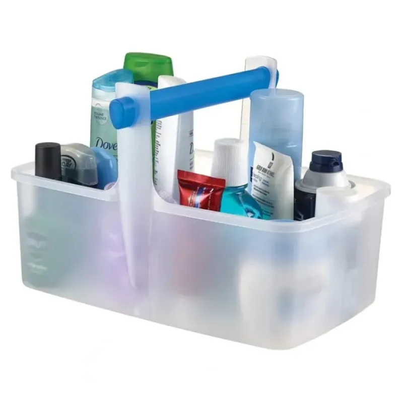 This easy-lift caddy holds all your bath supplies in one place. A perforated base allows water to drain allowing for use right in the shower. Perfect for use in the dorm!