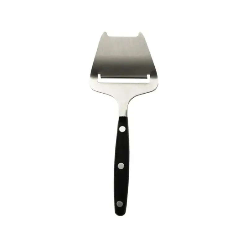 An assortment of cheese knives featuring a high-quality satin polished stainless-steel blade designed for a specific cheese type. The stylish full tang handles are constructed using a dense and durable plastic material. with stainless steel rivets.