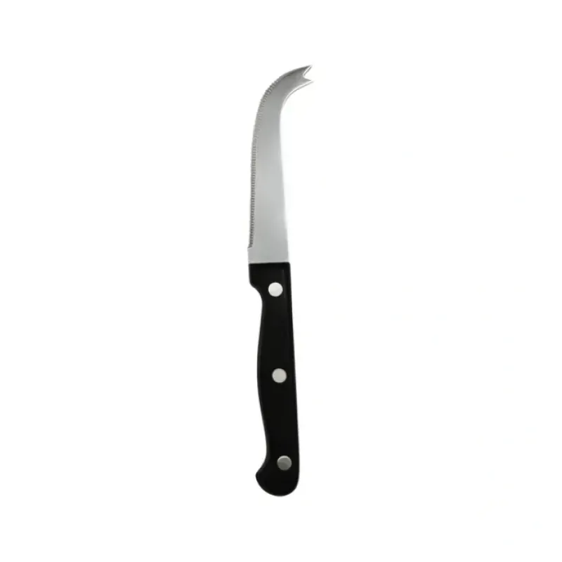 An assortment of cheese knives featuring a high-quality satin polished stainless-steel blade designed for a specific cheese type. The stylish full tang handles are constructed using a dense and durable plastic material. with stainless steel rivets.